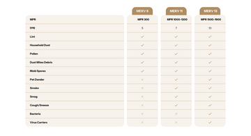 This MERV (Minimum Efficiency Reporting Value) rating chart helps you choose the right air filter for your specific needs and HVAC system, with higher numbers indicating greater filtration efficiency.
